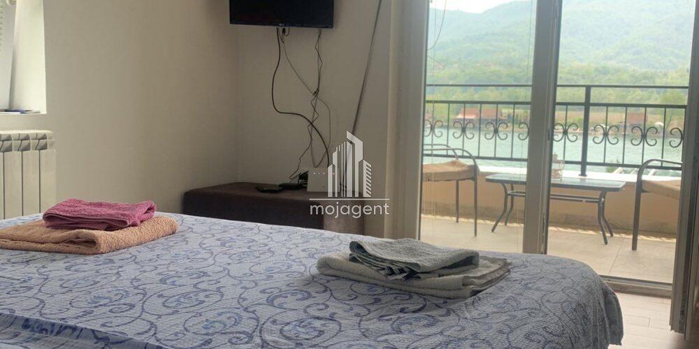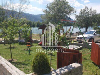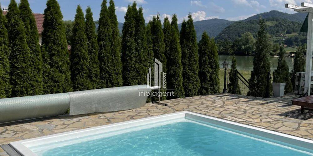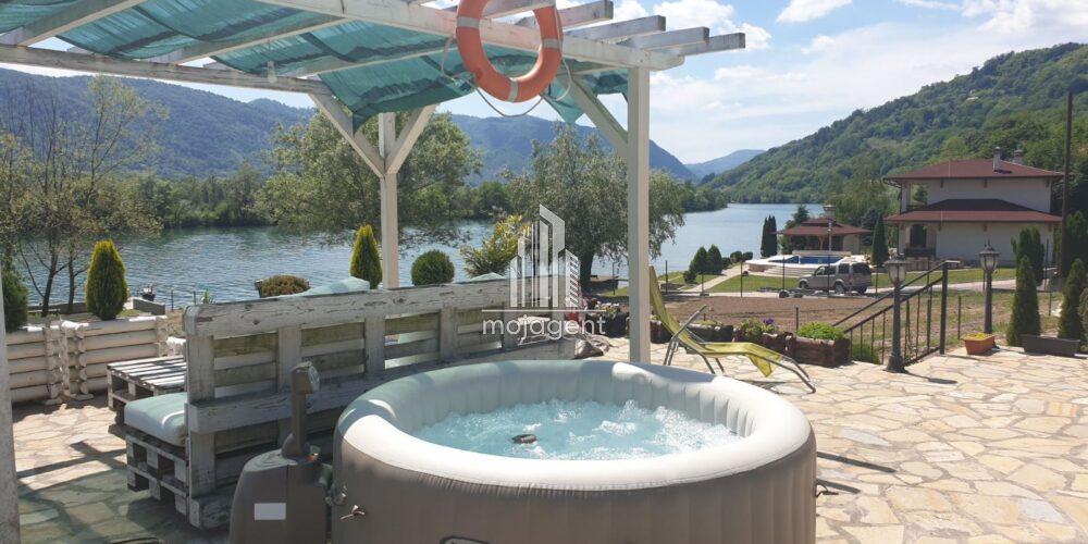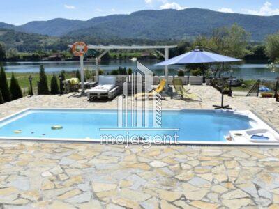 Na prodaju komforna kuća na Zvorničkom jezeru, između Malog Zvornika i Ljubovije. Kuća se nalazi na samoj obali Drine. Na obali je izgrađen mol za pecanje i pristajanje čamaca. Ukupna stambena površina iznosi 250 m2, izgrađena je na tri sprata, sastoji se od tri odvojene stambene jedinice sa zasebnim ulazima. U prizemlju se nalazi dnevni boravak sa trpezarijom, kuhinja, dvije spavaće sobe, dva kupatila, tehničke prostorije , terasa sa pogledom na jezero. Na međuspratu se nalazi dnevni boravak, čajna kuhinja, kupatilo, spavaća soba i terasa. U prostranom potkrovlju je smještena dnevna soba, trpezarija, kuhinja, spavaća soba, kupatilo, ostava i terasa. Sve tri stambene jedinice su opremljene klima uređajima i grijanjem na pelet. Ispred kuće se nalazi bazen dimenzija 8m × 4m, dubine 1.5 m. Pored bazena se nalazi uređen kafić površine 40 m2, opremljen šankom i kupatilom. Površina placa na kom se kuća nalazi je 15,53 Ara. Plac ima izlaz na jezero, na ulasku u plac postoji pokretna kapija koju koristi samo vlasnik, takođe postoji više parking mjesta koja su izbetonirana. Ovo je odlična investicija kako za porodičan život tako i za iznajmljivanje.